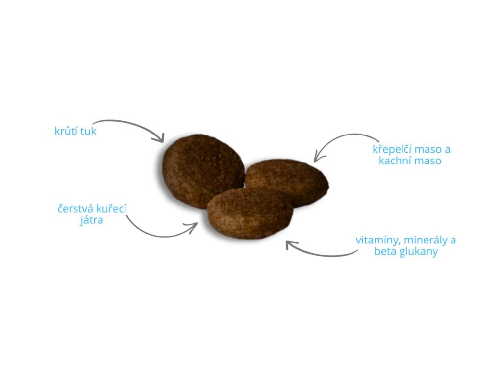 - Optimální kalorické hladiny podporující stabilní váhu pejska