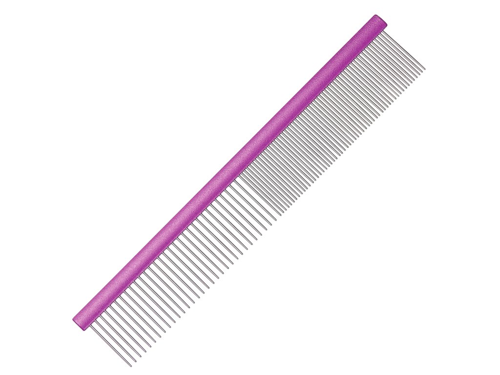 Hřeben Groom Professional Spectrum 50/50 je vhodný pro precizní práci. Oceníte ho při úpravě složitějších partií srsti nebo při úpravě jemné srsti. Rozdělení hustoty hrotů 50/50 Vám umožňuje všestrannost jeho použití a jeho délka (25cm) Vám umožní větší kontrolu nad srstí. Hřeben má hliníkový hřbet a nerezové hroty, které krásně kloužou po srsti. Díky použitým materiálům je hřeben velmi lehký a dobře se s ním pracuje, ocení ho i v profesionálních salonech.